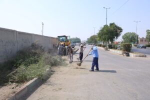 پاکسازی حاشیه پیادهروها و نوار سبز بلوارها