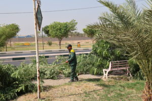 🌿 زیباسازی شهری در مسیر پلیس راه تا ندافیه؛ چمنزنی و هرس در اولویت امروز