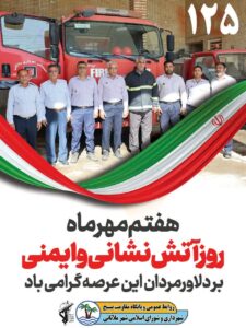 اینجانبان، شهردار و اعضای شورای اسلامی شهر ملاثانی، با گرامیداشت یاد و خاطره شهدای آتشنشان، این روز پرافتخار را به همه پرسنل زحمتکش واحد آتشنشانی شهرداری ملاثانی تبریک عرض مینماییم و توفیق، تندرستی و عزت روزافزون را برایشان آرزو داریم.
