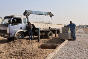 نصب فونداسیون بتنی پایههای روشنایی در پارک خیابان ۱ کوی قدس